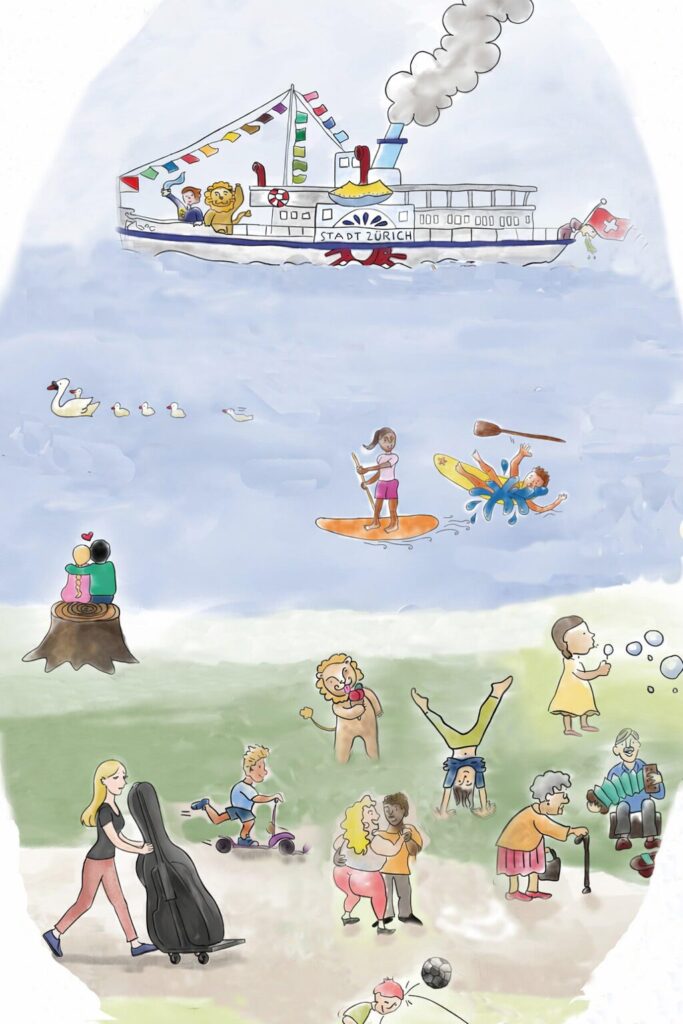 Ein wimmelndes Frühlingsbild erwacht zum Leben und verwandelt sich in frohe, nachdenkliche, beschwingte und ruhige Musik. Inspiriert von Beatrice Kaufmanns Zürich Wimmelbuch hat Guido Koch eigens für das Duo ein neues Wimmelbild gestaltet.